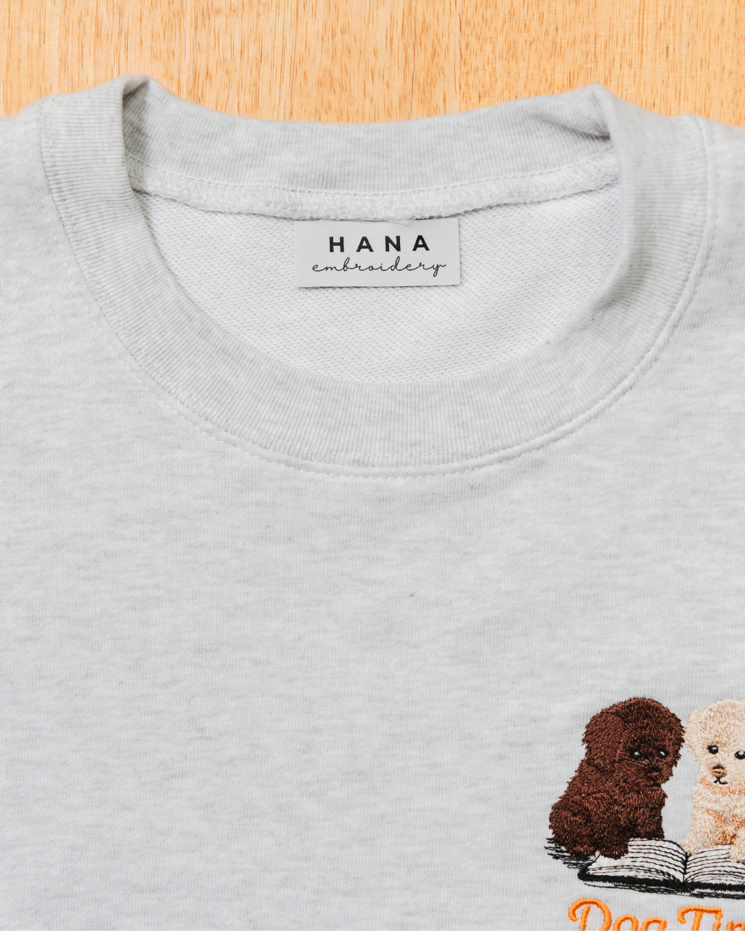 まるで“物語の続きを一緒に楽しんでいる”かのような、愛らしく温かい瞬間を丁寧なステッチで描き起こしたオリジナル刺繍です。