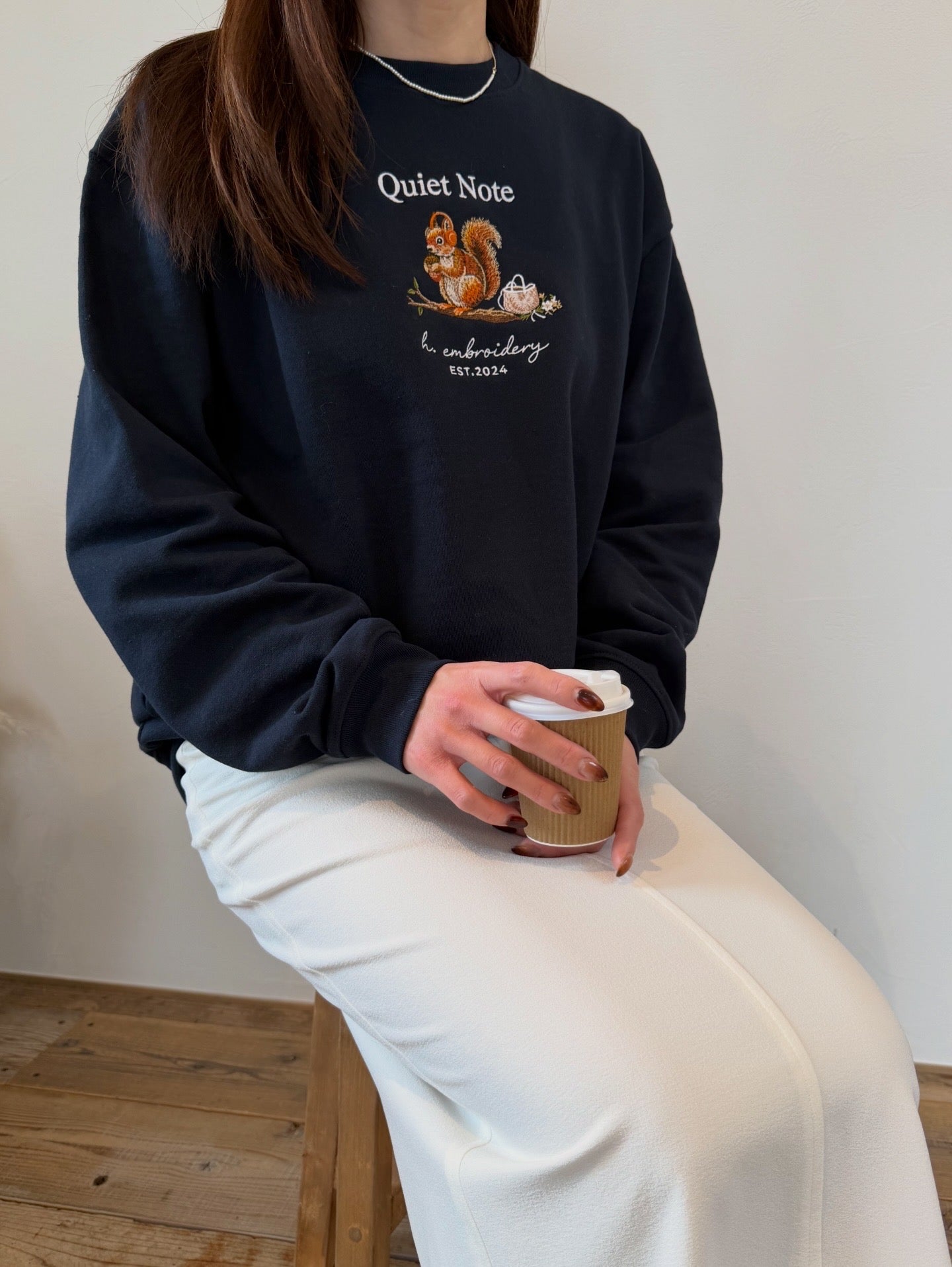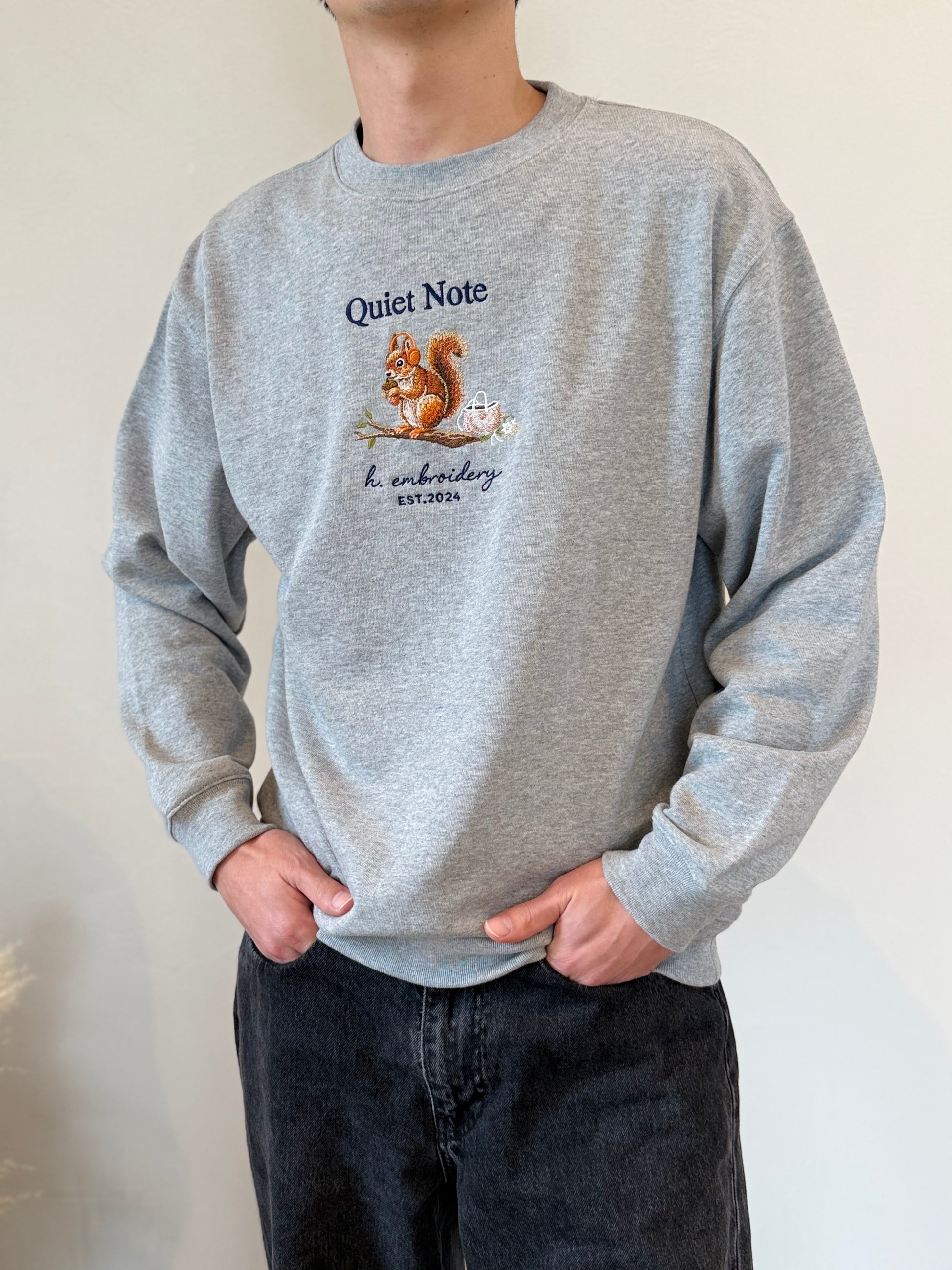 静かな時間にそっと寄り添う、リスの刺繍スウェット。